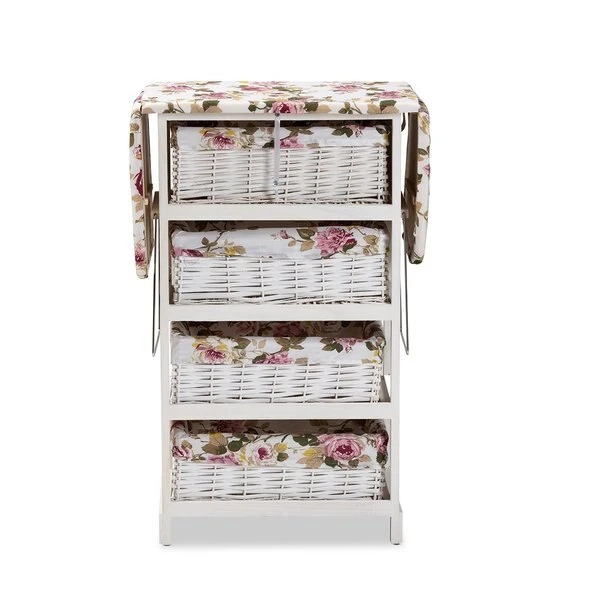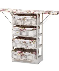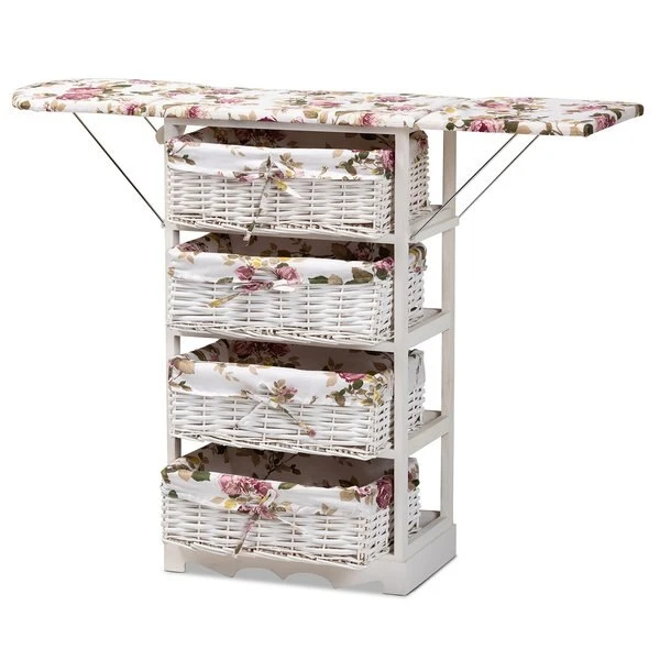 Baxton Studio Lacole Modern Multi-Colored Fabric Upholstered & White Finished Wood Drop Leaf Ironing Board cabinet