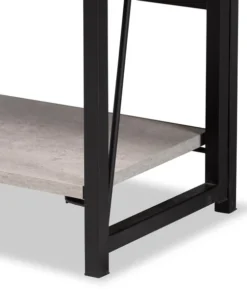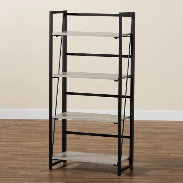 Baxton Studio Lakota Modern Industrial Light Grey Finished Wood and Black Metal 4-Tier Display Shelf