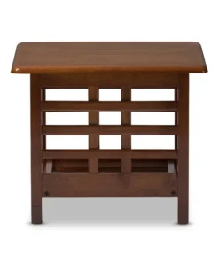 This end table is ideal to create an inviting cozy corner in your living space. A perfect fusion of age old artisanship and modern aesthetics, the table goes well with contemporary and ethnic decor alike. With an airy window pane design wood frame, the Larissa wooden end table is a great addition to compact homes. Featuring mission style modern classic design, the Larissa end table is constructed of eco-friendly solid rubberwood and rubberwood veneer. The table features strong and durable ready-to-assemble construction with slatted shelf for magazines and books. Supported by chunky wood blocks on four sides, the end table, with beveled edge, is finished in cherry finishing. The table looks great from all angles, whether in a lounge arrangement, public waiting area or private office. The occasional end table requires assembly.