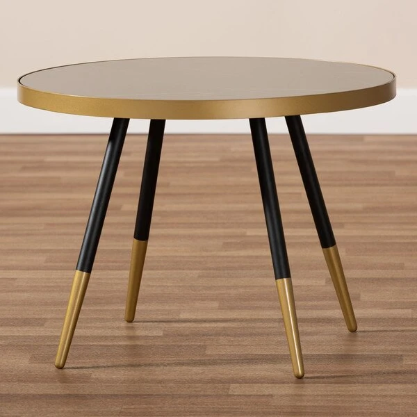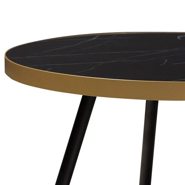 A seamless blend of luxe elements makes the Lauro coffee table a stunning addition to any living room. Constructed from sturdy metal, the Lauro features a divine MDF wood tabletop overlaid with a black imitation marble paper that is difficult to distinguish from the genuine stone. The tabletop is encased within a striking gold-finished frame that provides a sense of harmony among the two-tone black and gold-tone table legs. Use this magnificent piece as either a coffee table or end table. The Lauro coffee table requires assembly.