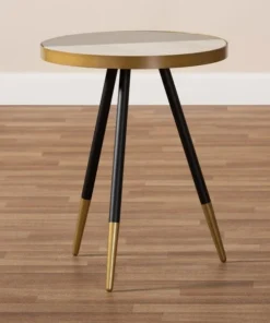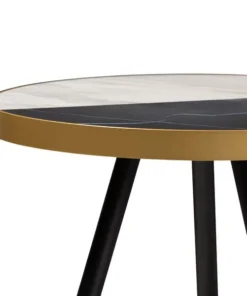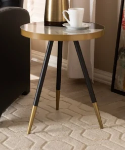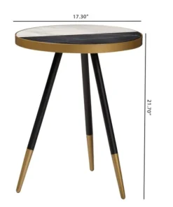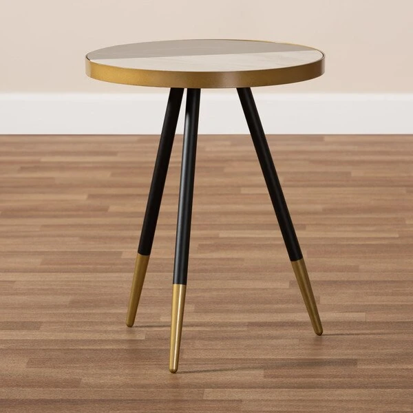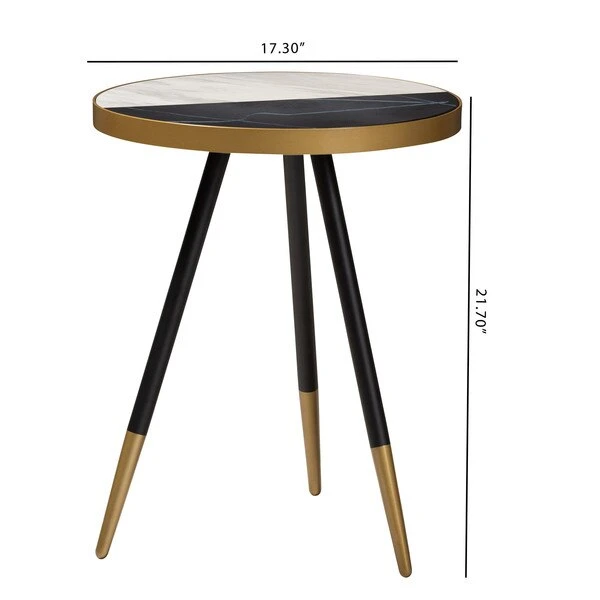 A seamless blend of luxe elements makes the Lauro end table a stunning addition to any living room or bedroom. Constructed from sturdy metal, the Lauro features a divine MDF wood tabletop overlaid with a two-tone black and white imitation marble paper that is difficult to distinguish from the genuine stone. The tabletop is encased within a striking gold-finished frame that provides a sense of harmony among the two-tone black and gold-tone table legs. Use this magnificent piece as an end table in the living room or as a nightstand in the bedroom. The Lauro end table requires assembly.