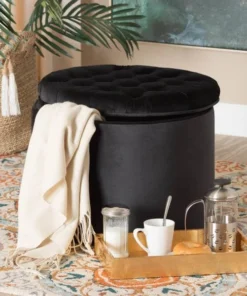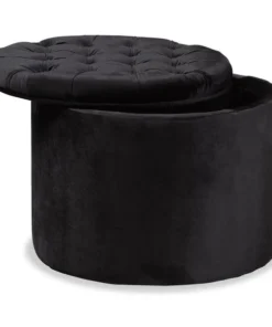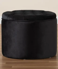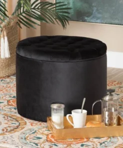 Baxton Studio Livana Contemporary Glam and Luxe Black Velvet Upholstered Storage Ottoman