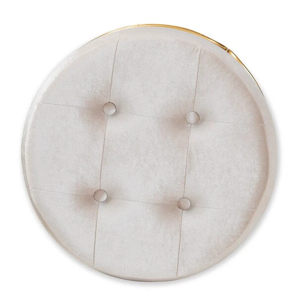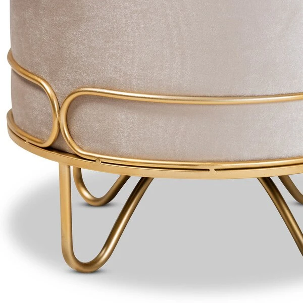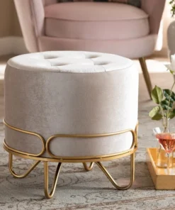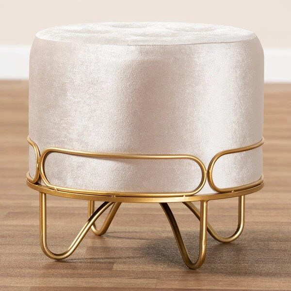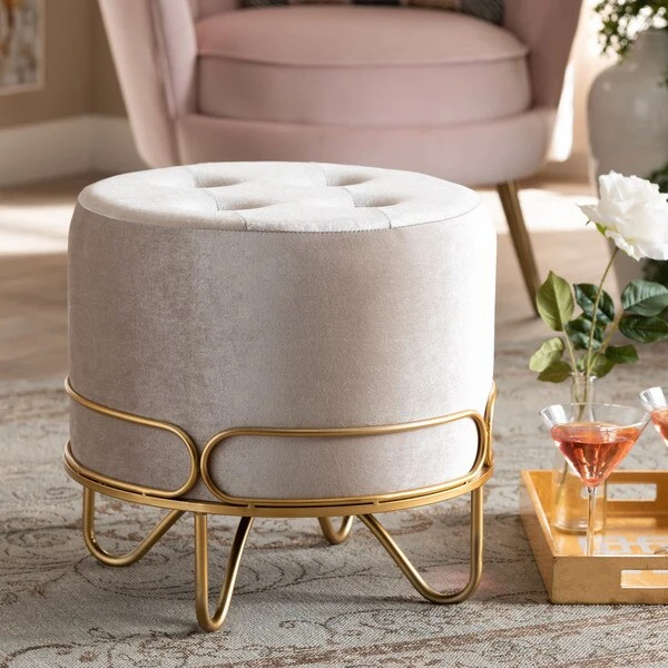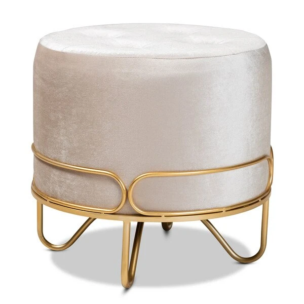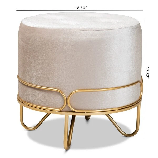 Add a dash of glamour to any space with the Lucienne ottoman. This metal ottoman features a stunning gold-toned frame that gives the piece a light, dainty feel. The seat is upholstered in a rich beige velvet fabric and is button tufted to accentuate the stunning sheen in the velvet. Use this exquisite piece as an extra seat or as a footstool. The Lucienne ottoman will arrive fully assembled.