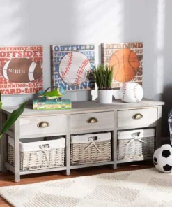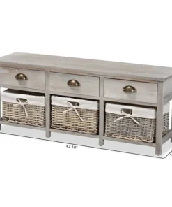Baxton Studio Mabyn ModernLight Grey Finished Wood 3-Drawer Storage Bench with Baskets