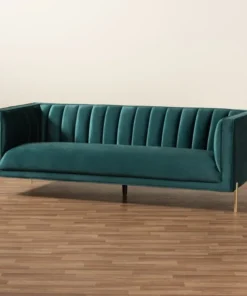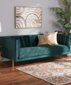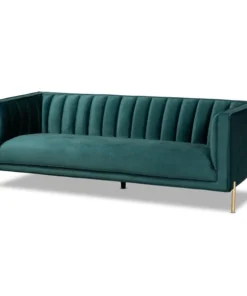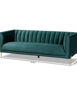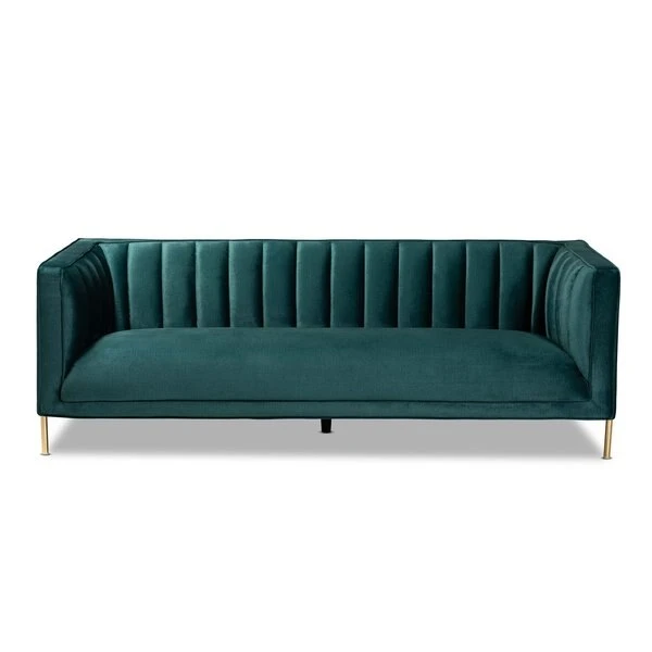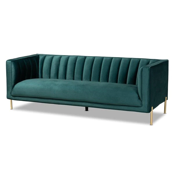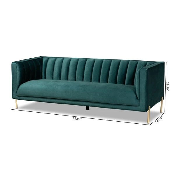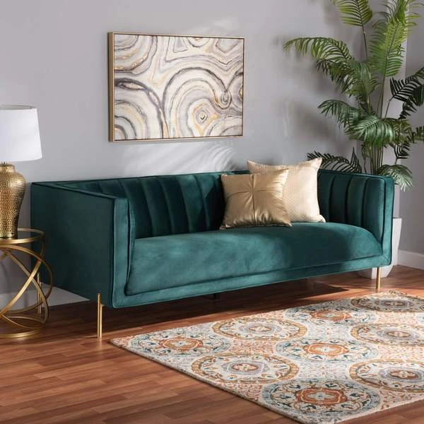 Baxton Studio Maia Contemporary Glam and Luxe Green Velvet Upholstered and Gold Finished Metal Sofa