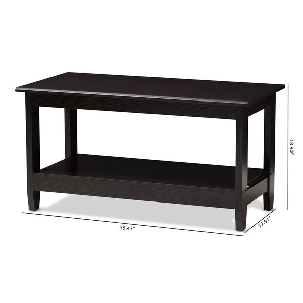 The Malena is the essential coffee table with its minimalist design. The modern and contemporary-inspired design emphasizes clean lines and geometric shapes. The Malena is finished all over in a welcoming, wenge brown. The table features a smooth, rectangular table top, with and open space underneath. The open shelf space beneath the table top is ideal for storage or displaying decor, making the Malena a great option as an accent table. The legs of the table are straight, with slightly tapered feet. The Malena requires assembly.