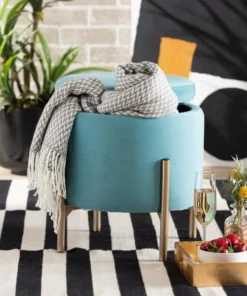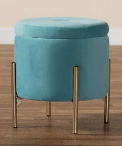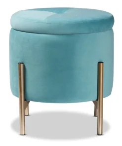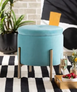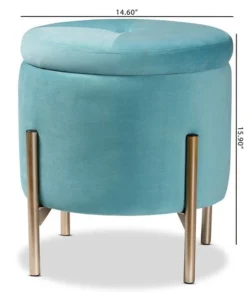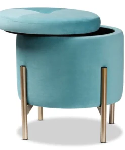 Baxton Studio Malina Glam and Luxe Sky Blue Velvet Upholstered and Gold Finished Metal Storage Ottoman