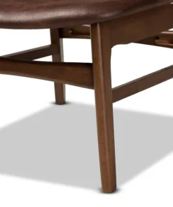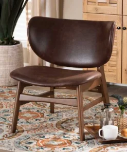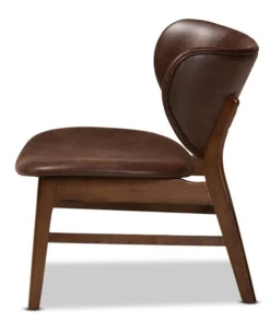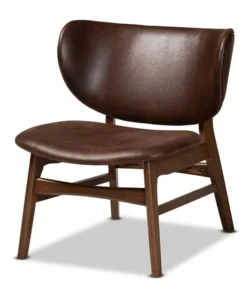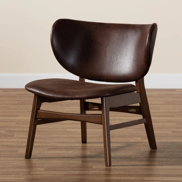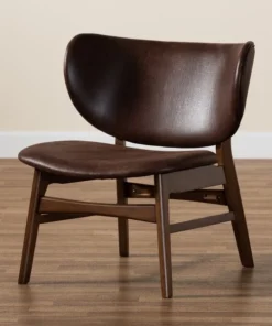 Baxton Studio Marcos Mid-Century Modern Dark Brown Faux Leather Wood Living Room Accent Chair