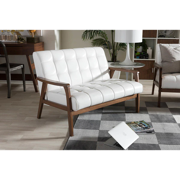 There’s just something special about 20th-century style. We’ve captured the essence of this period while moving it forward a few steps with our Mid-Century Masterpieces collection. You’ll love this loveseat’s retro flair without the collectibles-level price tag (dare we say cheap?). Medium brown wood veneer finish paired with a white faux leather foam-cushioned seat straddles the stylistic statements of yesterday and today for the perfect living-room accent. This loveseat is perfectly suitable for a small office setting or apartments.
