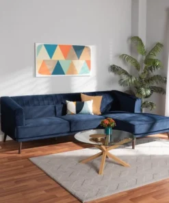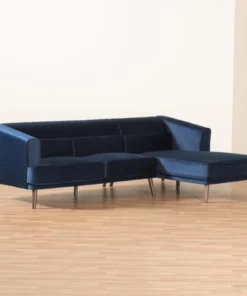 Enrich your interior with the stunning Morton sofa. Made in Malaysia, the Morton is comprised of a sturdy wood frame padded with thick layers of soft foam and upholstered in smooth velvet fabric. Two seats and a chaise accented with channel tufting provide plush support and chic style. Requiring assembly, the Morton rests on angled wood legs showcasing a rich dark brown finish. The armrests gently slope for a unique silhouette that distinguishes the Morton sectional sofa as a fantastic addition to the modern home.