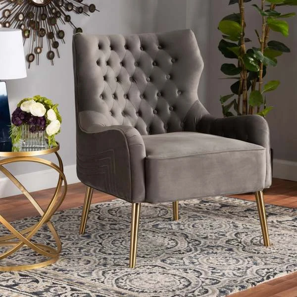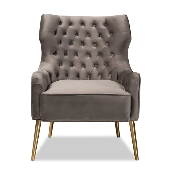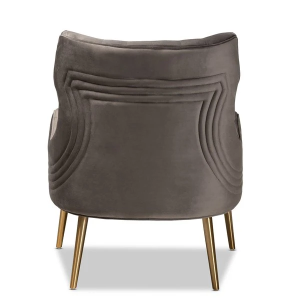 Baxton Studio Nelson Modern Luxe and Glam Grey Velvet Fabric Upholstered and Gold Finished Metal Armchair