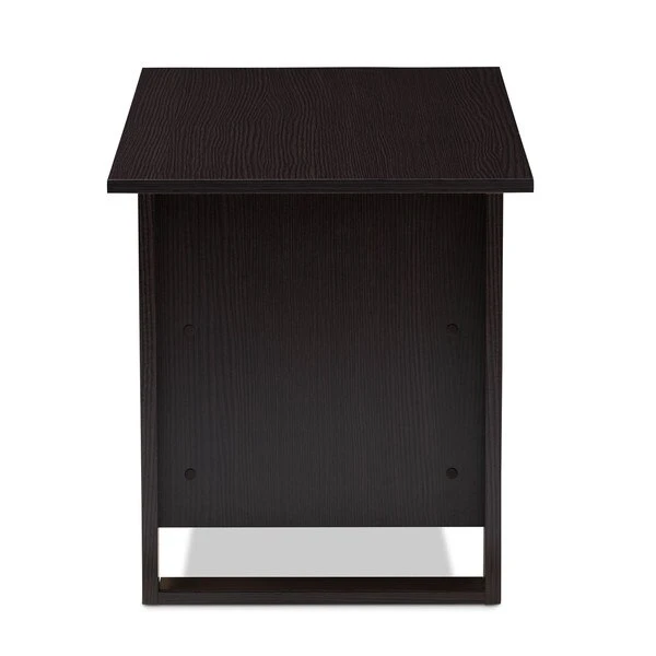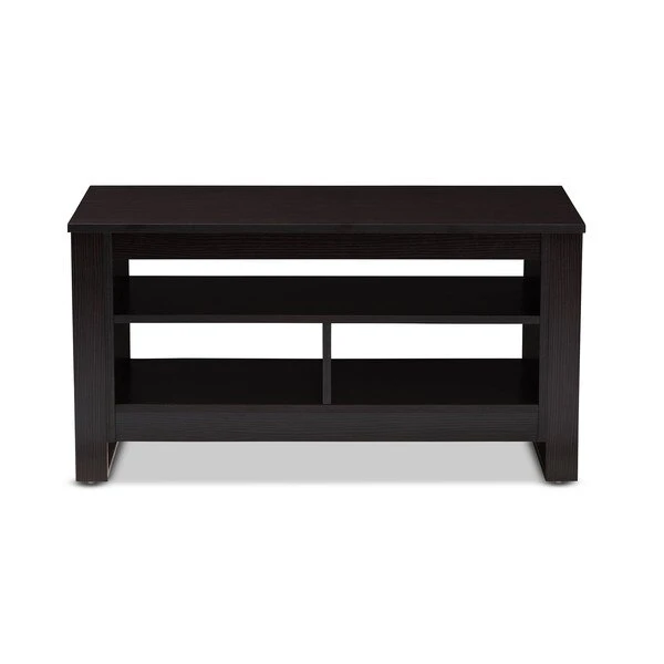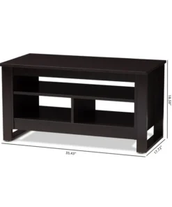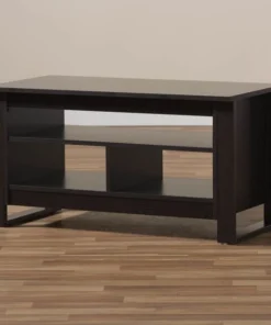 The Nerissa coffee table is both practical and stylish. The modern and contemporary-inspired design emphasizes clean lines and geometric shapes. The Nerissa is finished all over in a welcoming, wenge brown. The table features a smooth, rectangular table top, with three open storage compartments underneath. The open shelf spaces beneath the table top are ideal for storage or displaying decor, making the Nerissa a great option as an accent table. The legs of the table are straight and have a connected leg style. The Nerissa requires assembly.