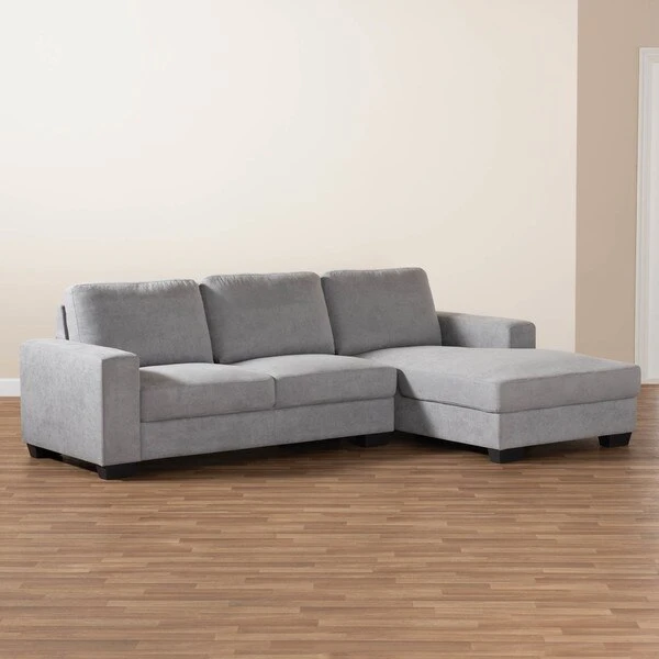 With its modern silhouette and plush cushions, the Nevin sofa has all the elements to anchor your living room in style and comfort. Constructed from wood, the Nevin is upholstered in a chic grey polyester fabric. Wide, supple cushions provide ample comfort and relaxation during movie nights. Sleek track arms lend a tailored look, while black tapered feet provide elevation for easy dusting. The Nevin sofa requires assembly.