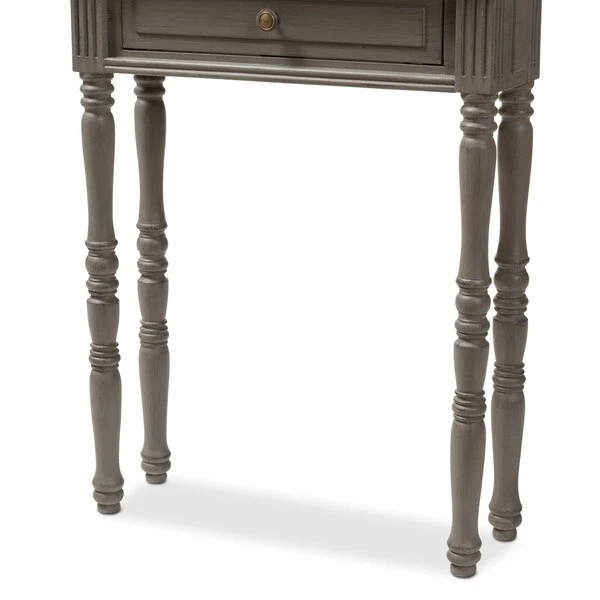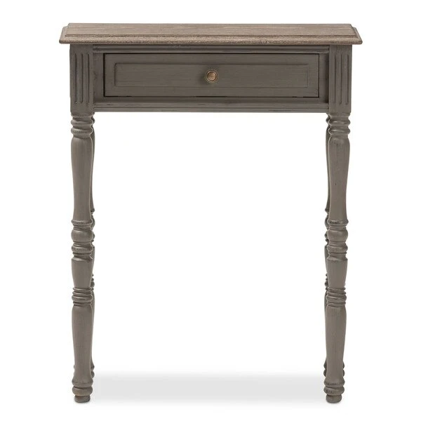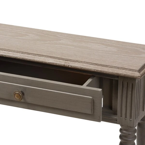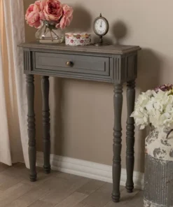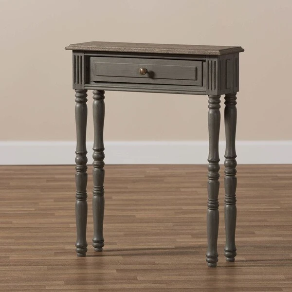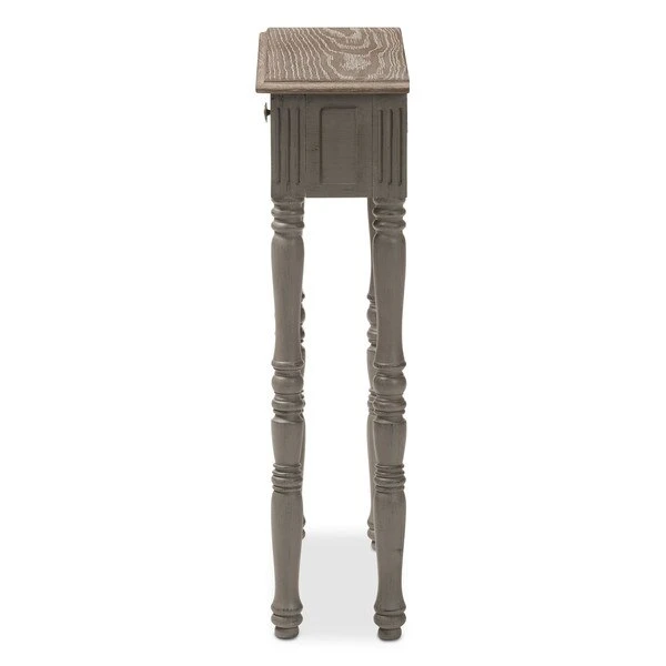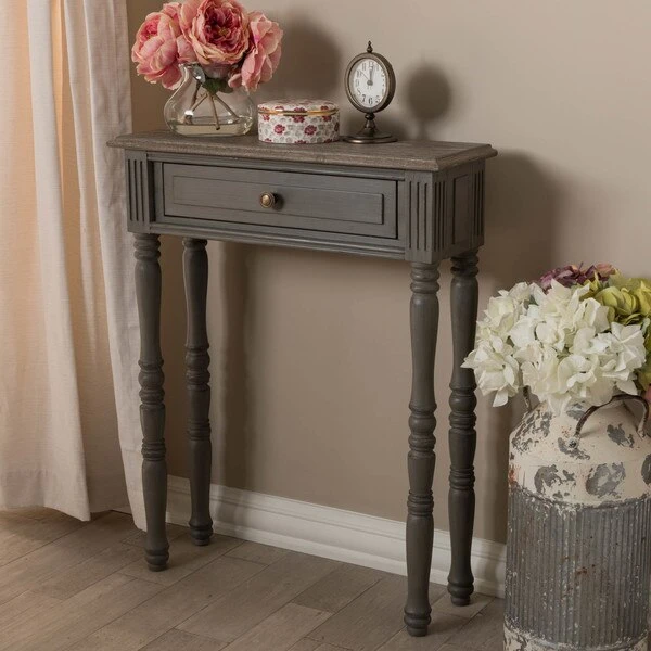 The ornate ball-turned details and the warm brown finish of the Noemie 1-drawer console table will add an element of romance and bygone times to your home. The country cottage farmhouse-inspired design is evident in the amount of detail put into this console table. The Noemie features one pull-out drawer and tall, shapely legs. A charming, dark bronze finished drawer pull gives the console table a bit of antique style. The Noemie is easy to coordinate with a wide range of styles, including French, rustic, and provincial-inspired decor. Add the Noemie to your entryway or mudroom to delight visitors. The console table requires assembly.