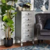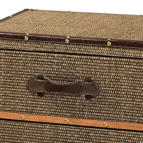 Traditional charm meets modern efficiency with the Owen accent storage cabinet. Made in China, this cabinet is comprised of a sturdy wood frame upholstered in brown fabric. Faux leather bands, accented with brass-tone metal studs, line the edges of the Owen to convey a vintage feel. The Owen will arrive fully assembled and features four spacious drawers to offer a convenient storage solution for busy areas of your home. Faux leather handles complete the look, making the Owen accent cabinet a fantastic addition to any space.