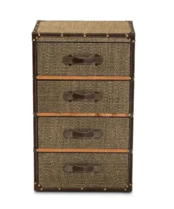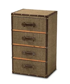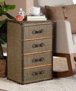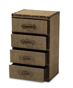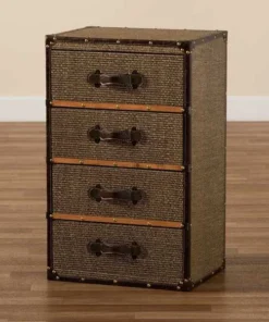 Baxton Studio Owen Mid-Century Brown Fabric Upholstered 4-Drawer Accent Storage Cabinet