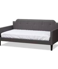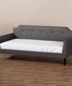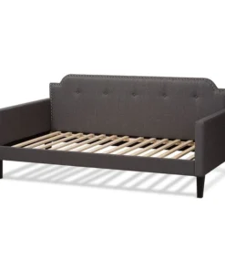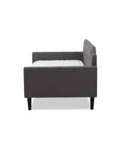 Transform any space in the home from living room to bedroom in just a few simple steps with the Packer daybed. Solidly built from rubberwood and MDF wood, the Packer daybed can be easily converted from a seating area to a sleeping sanctuary. The Packer is foam-padded and upholstered in polyester fabric for comfort and contemporary appeal. Featuring a cut out back panel, the daybed is accented with chrome nailheads for a glamourous, modern look. The Packer daybed requires assembly.