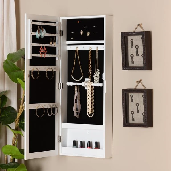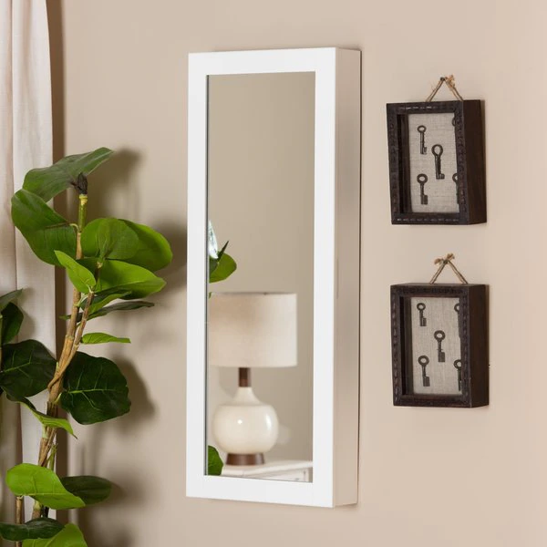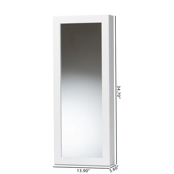 Baxton Studio Pontus ModernWhite Finished Wood Wall-Mountable Jewelry Armoire with Mirror