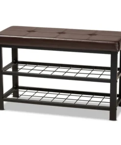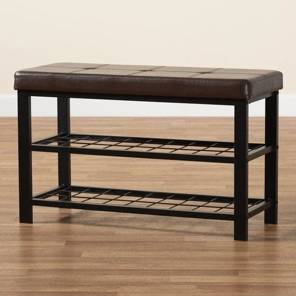 Baxton Studio Rance Modern Industrial Dark Brown Faux Leather Upholstered and Black Metal Shoe Storage Bench