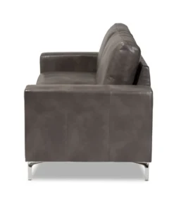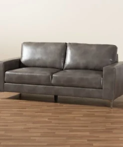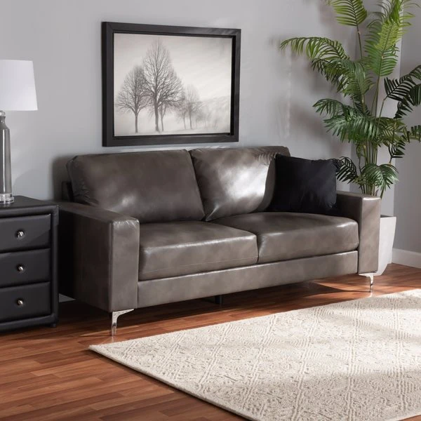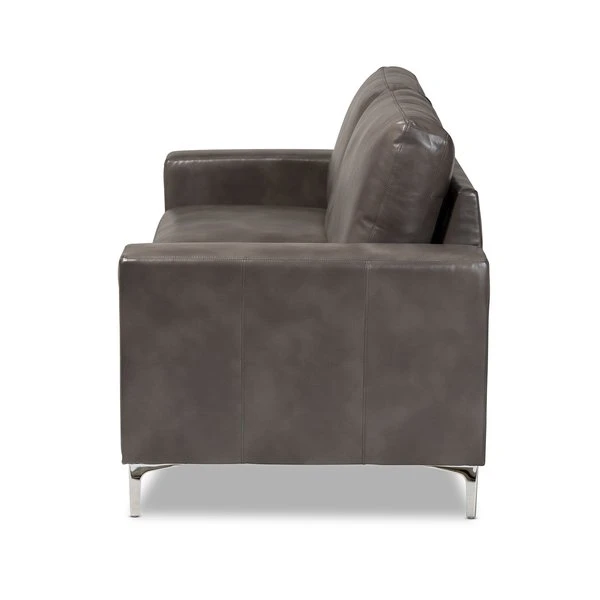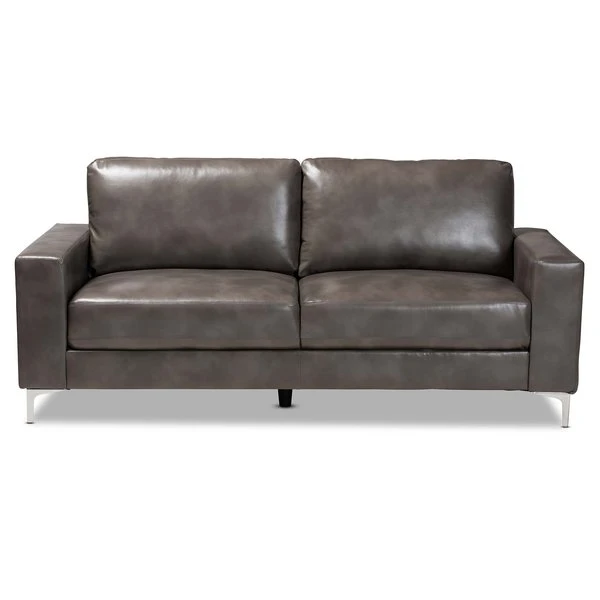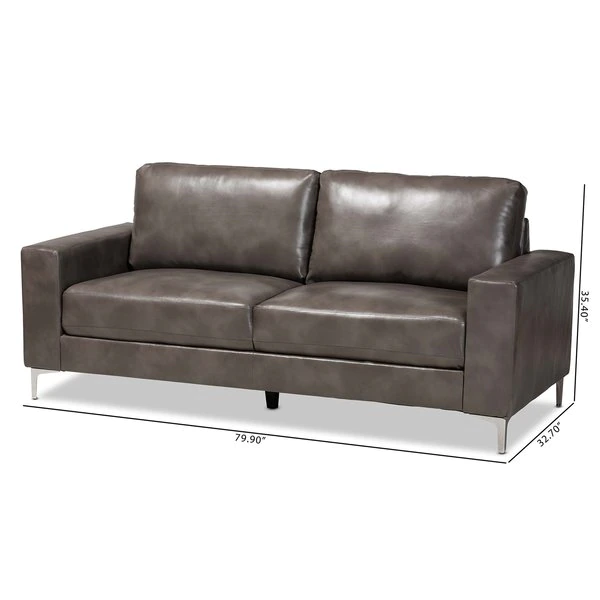 Baxton Studio Rayan ModernGrey Faux Leather Upholstered Silver Finished Metal Loveseat
