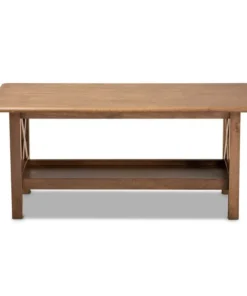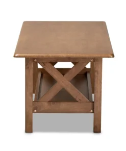 Create a warm, inviting atmosphere in your living space with the Reese coffee table. This solid wood coffee table displays a walnut brown finish that highlights the superior craftsmanship on its beveled edges. The tabletop features ample space to place remotes and a potted plant, while a lower shelf is well suited for books and magazines. Crisscross side panels lend visual interest. The Reese coffee table requires assembly.