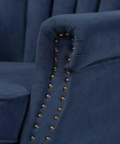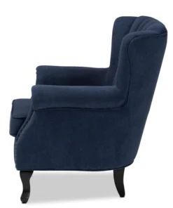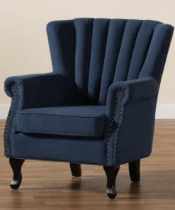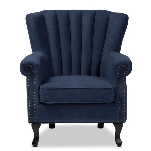 Baxton Studio Relena Traditional Navy Blue Velvet Upholstered and Dark Brown Finished Wood Armchair
