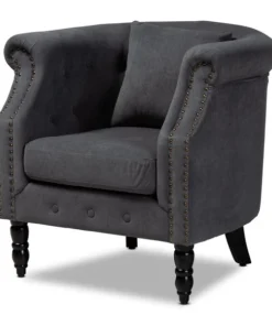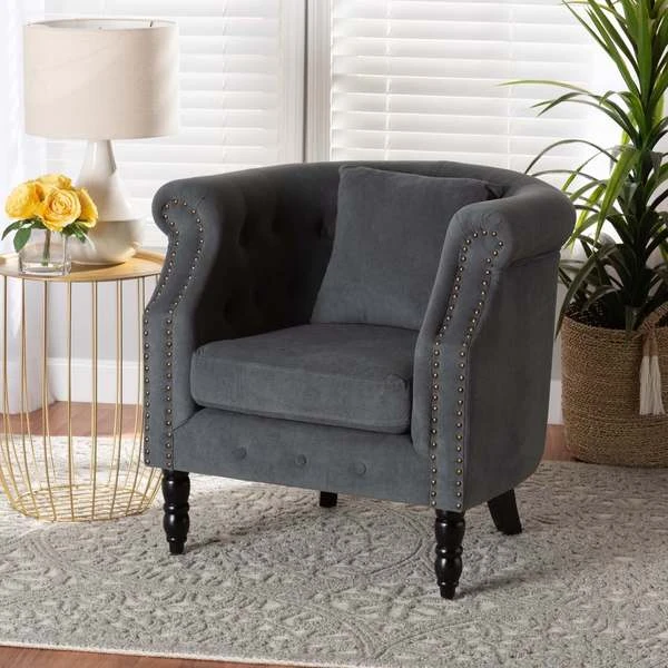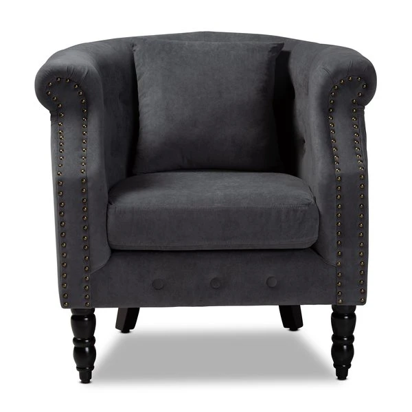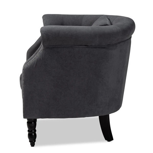 Baxton Studio Renessa Traditional Grey Velvet Upholstered and Dark Brown Finished Wood Armchair