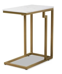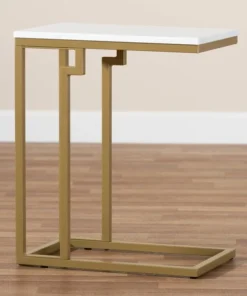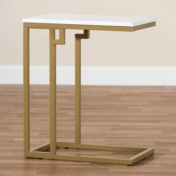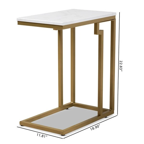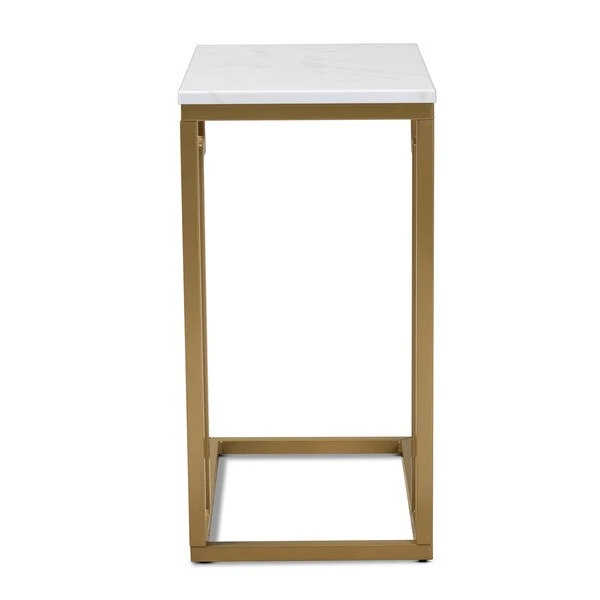 Cultivate a luxurious feel in your space with the Renzo end table. The Renzo features a stunning white faux marble tabletop that bears a striking resemblance to the genuine stone. The clean, sharp lines on the gold-finished frame convey a light, airy feel. Its slim silhouette makes it well suited for placement next to a sofa or chair. The Renzo end table requires assembly.