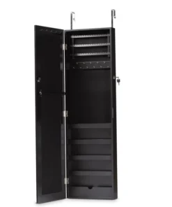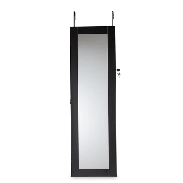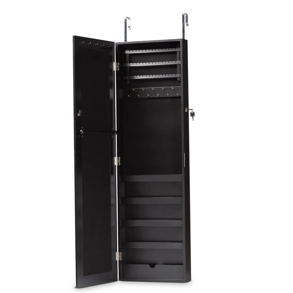 Baxton Studio Richelle ModernBlack Finished Wood Hanging Jewelry Armoire with Mirror