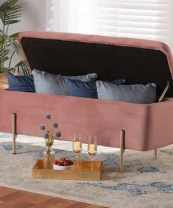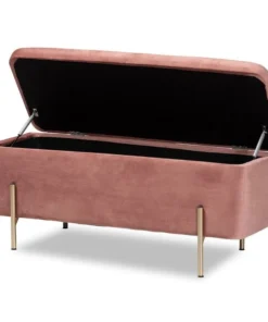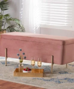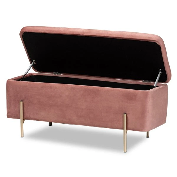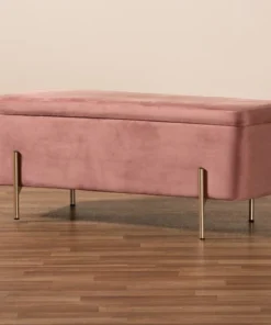 Baxton Studio Rockwell Glam and Luxe Blush Pink Velvet Upholstered and Gold Finished Metal Storage Bench