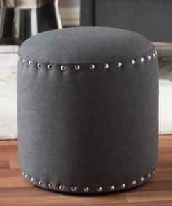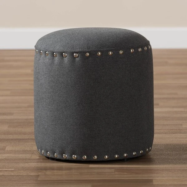 The Rosine is perfect for when you're limited on space, but don't want to be limited on style. This modern and contemporary-inspired ottoman is constructed of solid and engineered wood, with foam padding for lasting comfort. The simple and chic dark gray fabric upholstery is accented with a delightful nail trim towards the top of the Rosine. The size and smooth shape of this ottoman make it a charming addition to your livingroom, entryway, bedroom – anywhere that could use one last touch to pull the room together. To Rosine comes fully assembled.