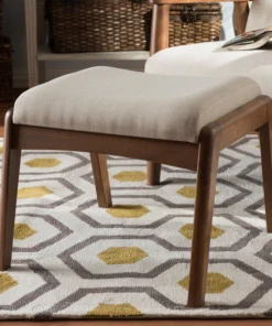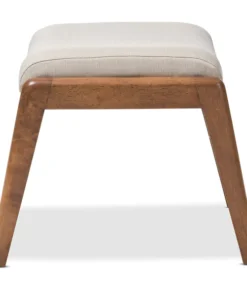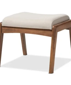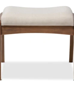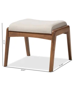 Inspired by the Danish designs, the Roxy upholstered footstool is the perfect accompaniment to the Roxy high-back lounge chair, providing additional comfort to the elegant piece. Crafted of solid rubberwood in dark walnut finishing with beige fabric upholstery, a sophisticated look of the ottoman is formed. Featuring a concaved design in the middle of the ottoman, the Roxy promotes ultimate relaxation. Durable and functional, the piece reflects the Danish design principles of simple form and practical structure. The Roxy ottoman requires assembly.
