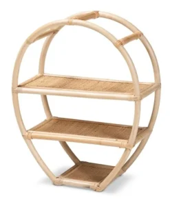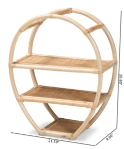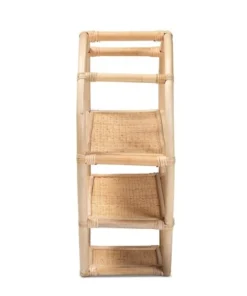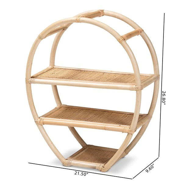 Baxton Studio Ruana Modern Bohemian Natural Brown Finished Rattan 3-Tier Display Shelf