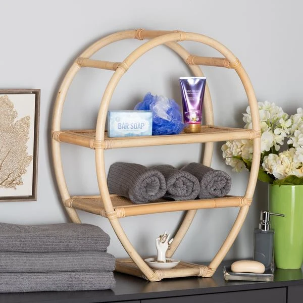 Liven up your interior with the eye-catching yet efficient design of the Ruana display shelf. This shelf is comprised of a rattan frame fitted with woven shelves. Three tiers of shelves create a stunning platform to organize and display decorations or household essentials. The Ruana will arrive fully assembled and features a unique, rounded frame inspired by exotic craftsmanship. A handy yet visually striking addition, the Ruana display shelf organizes your space in extraordinary style. This is a product of nature and may have variations in areas such as, but not limited to, color, pattern, grain and texture. The hair-like strands of rattan/rattan-fiber are common due to nature of the material.