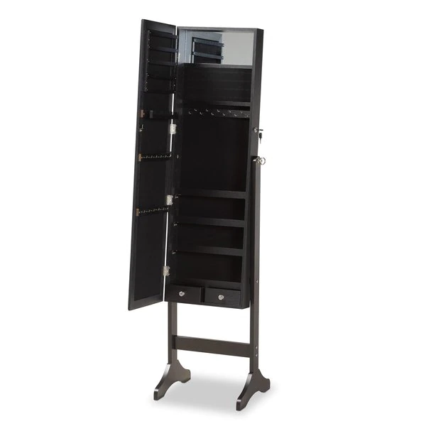 Baxton Studio Ryoko ModernBlack Finished Wood Jewelry Armoire with Mirror