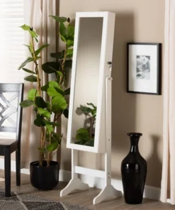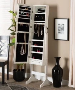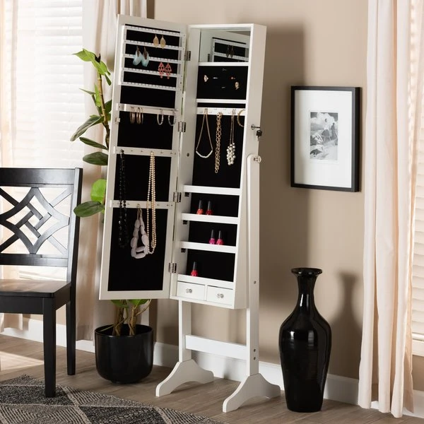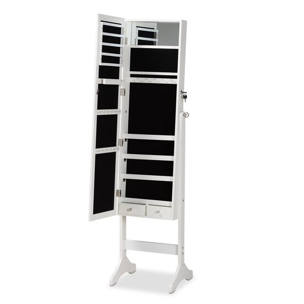 Baxton Studio Ryoko ModernWhite Finished Wood Jewelry Armoire with Mirror