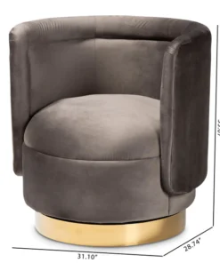 Retro glamour meets modern comfort in the Saffi accent chair. This chic piece is upholstered in a rich velvet fabric that feels exceptionally soft to the touch. Its barrel silhouette creates a cozy embrace, further amplified by its playful swivel base. Showcasing a striking gold-tone finish on its base, the Saffi will add a truly luxurious feel to any living room, den, or bedroom. The Saffi accent chair will arrive fully assembled.