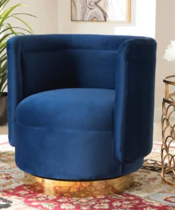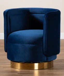 Retro glamour meets modern comfort in the Saffi accent chair. This chic piece is upholstered in a rich velvet fabric that feels exceptionally soft to the touch. Its barrel silhouette creates a cozy embrace, further amplified by its playful swivel base. Showcasing a striking gold-tone finish on its base, the Saffi will add a truly luxurious feel to any living room, den, or bedroom. The Saffi accent chair will arrive fully assembled.