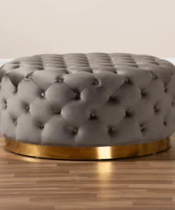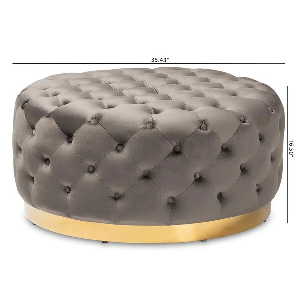 Glamour and versatility define the Sasha ottoman. Padded with foam for the utmost comfort, the Sasha is upholstered in a sleek velvet fabric that feels incredibly soft to the touch. Elaborate button tufting accentuates the sheen in the velvet, while a gold-tone finish on the base adds a hint of luxury. Use this versatile piece as a coffee table, footstool, or as extra seating for guests. The Sasha ottoman will arrive fully assembled.