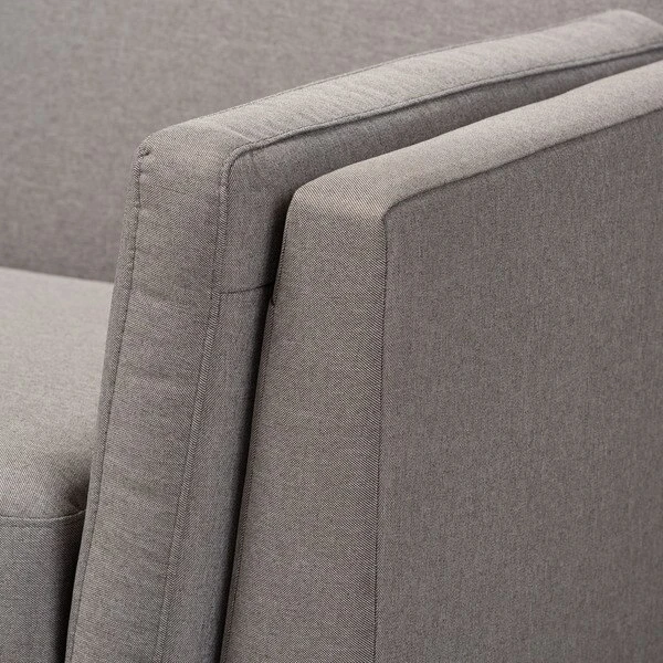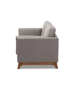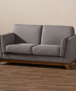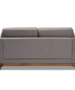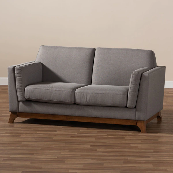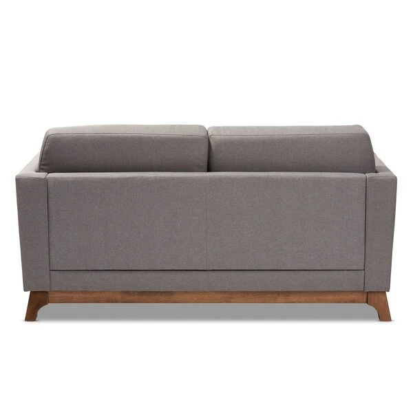 Create a stylish mid-century modern atmosphere in your living room with the Sava 2-seater loveseat. The Sava is constructed from solid rubberwood for durability and showcases a rich walnut finish. Plush foam-padding provides comfortable seating, while grey polyester fabric upholstery allows for easy maintenance. Featuring elements of mid-century modern design, the loveseat displays smooth track arms and angled legs. Add a few accent pillows and a knitted throw blanket to complete the look. The Sava 2-seater loveseat requires assembly.