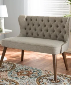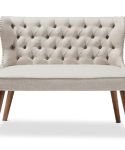 The Scarlett 2-seater loveseat settee is not the type of furniture to stay hidden in a corner. Channeling a brilliantly bold mid-century modern style, the Scarlett is a head turning design perfect for the modern home and commercial office. Silver nail heads trim around the sweeping curves of the backrest creating a welcome embellishment that accentuates the unique curved shape of its button-tufting backrest. Each element of the settee is not just stylish and up to-date, but also carefully sourced to ensure the highest production standards. The Scarlett loveseat is above all built for comfort and sturdiness. The inner metal frame provides a solid construction to support the webbed seat, while the medium density foam adds the soft touch that defines the most comfortable upholstery. Solidly supported by walnut rubber wood splayed legs, the Scarlett loveseat has been rigorously stress tested to make sure they hold their own through regular use. Stylish design meets everyday strength. A fully upholstered seat with exposed dark walnut wood looks great from all angles, whether in a lounge arrangement, public waiting area or private office. The splayed legs and button-tufting design add a retro modern touch to this piece of clean lines furniture. The Scarlett features light weight and easy handling. It will be suitable for those urban dwellers with limited space. It could be a cool-looking reading nook within 30 minutes of assembly out of a box. The Scarlett requires assembly.