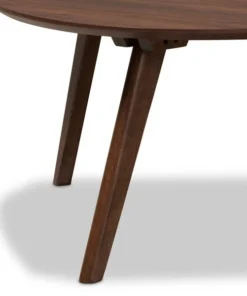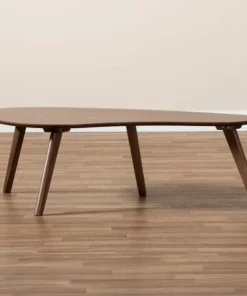 Anchor your living space in retro style with the Scarlette coffee table. Constructed from wood, the Scarlette features a warm walnut brown finish that complements any color palette. The tabletop features ample room to place remotes, a potted plant, and a cup of espresso. Rounded edges and angled legs provide a charming, mid-century feel. The Scarlette coffee table requires assembly.