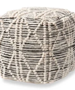 Baxton Studio Sentir ModernMoroccan Inspired Ivory and Black Handwoven Wool Blend Pouf Ottoman