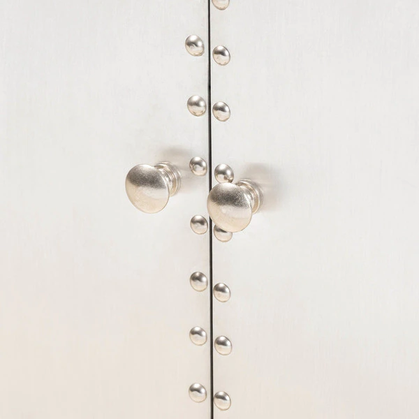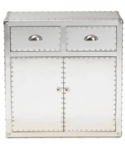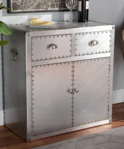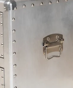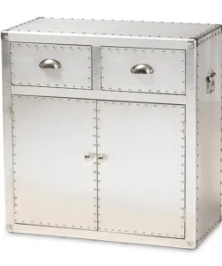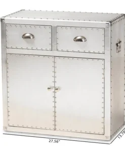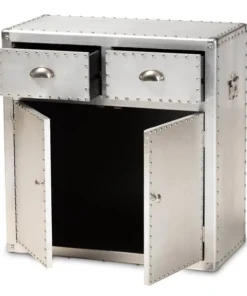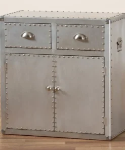 Bring chic industrial style into your space with the Serge cabinet. Constructed from metal, the Serge features two drawers and one concealed compartment, behind two doors, to keep items organized and out of sight. Polished silver metal drawer handles add a sleek touch. Inspired by vintage storage trunks, the Serge is embellished with rivets and corner protectors. This unique piece is well suited for a living room, bedroom, or entryway. The Serge cabinet will arrive fully assembled.