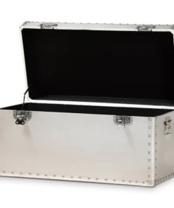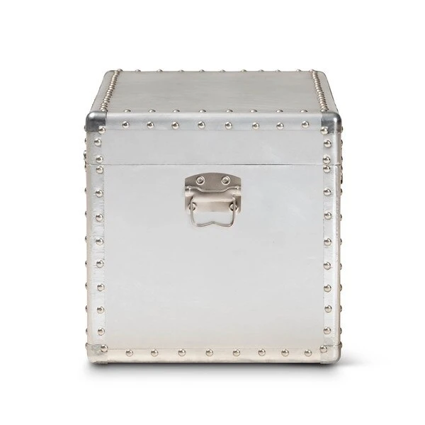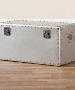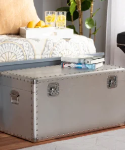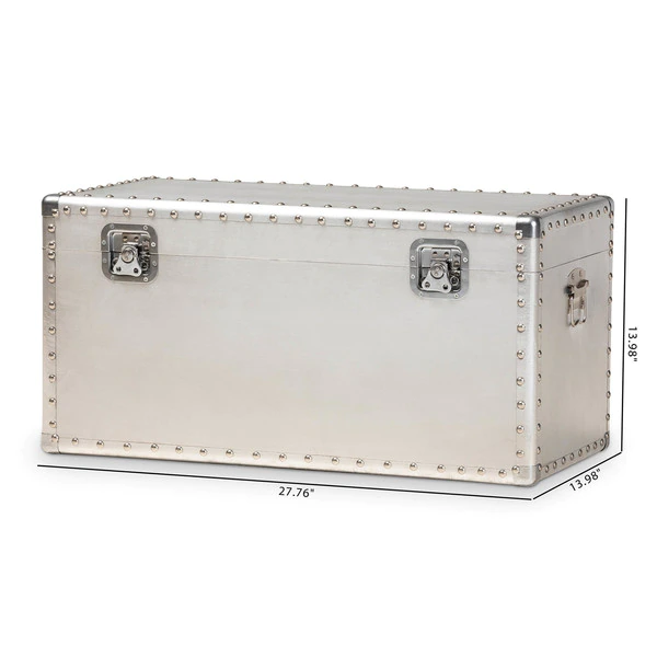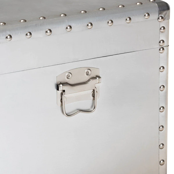 Add cool, vintage industrial-inspired storage to your space with the Serge trunk. Constructed from metal, the Serge features a spacious inner storage compartment. Modeled after antique steamer trunks, the Romain is accented with silver metal handles and imitation locks. Rivets add an extra dose of industrial style. Use the Serge to store extra blankets, pillows, and more. The Serge trunk will arrive fully assembled.
