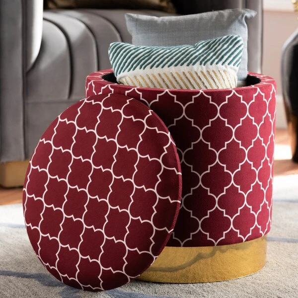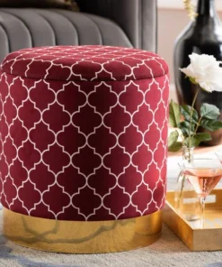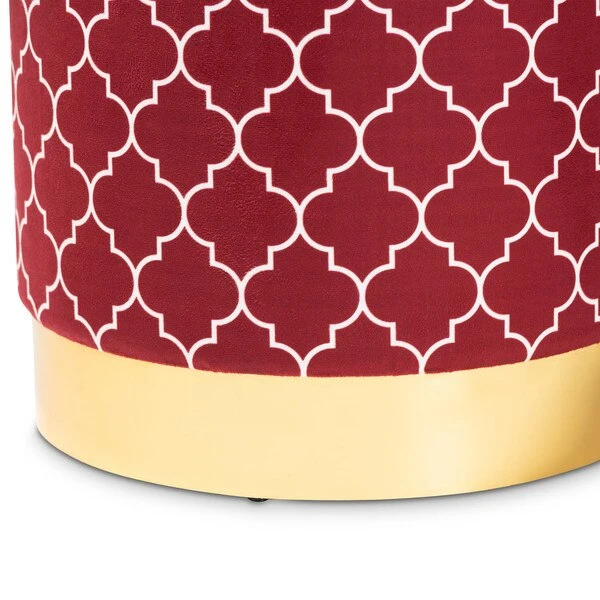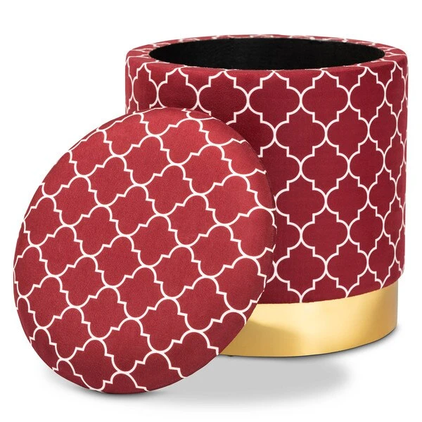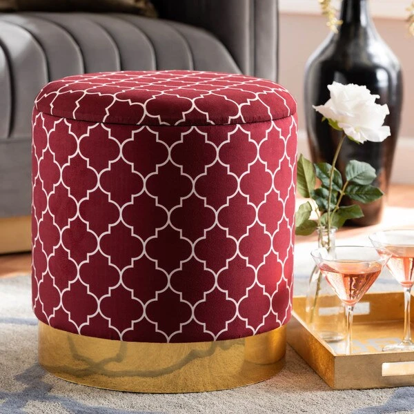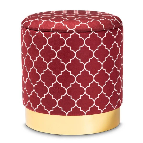 Maximize your storage capacity in the most glamorous way with the Serra ottoman. Padded with foam for the utmost comfort, the Serra features a removable lid that reveals ample storage space. The sleek velvet upholstery displays a quatrefoil pattern for a bold, eye-catching look that complements the striking gold finish on the base. This chic piece is well suited for use as seating or as a footstool. The Serra ottoman will arrive fully assembled.