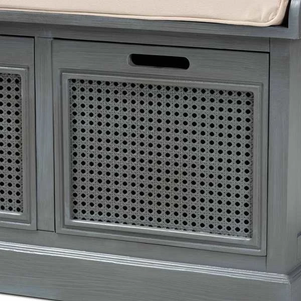 Baxton Studio Sheldon Contemporary Fabric Upholstered & Grey Finished Wood Shoe Storage Bench w/ Synthetic Rattan