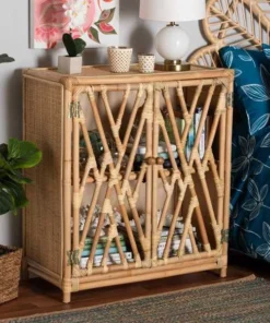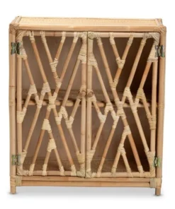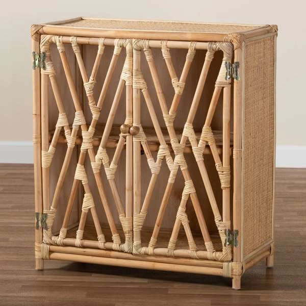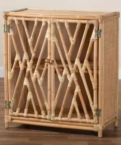 Baxton Studio Shena Modern Bohemian Natural Brown Rattan 2-Door Storage Cabinet