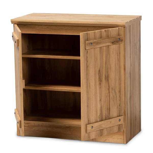 Reinvent your entryway with the cozy charm of the Sorina shoe cabinet. Made in Malaysia, the Sorina is comprised of sturdy wood finished in a stunning natural oak brown hue. Three shelves, behind a pair of doors, provide storage for around 9 pairs of shoes, depending on size. Requiring assembly, the Sorina is fitted with paneled wood doors that lend a warm farmhouse aesthetic. An ideal solution for busy entryways, the Sorina shoe cabinet is an excellent addition to any home.