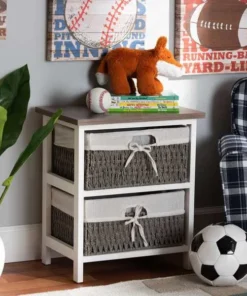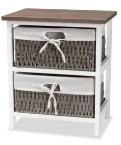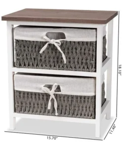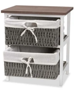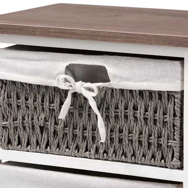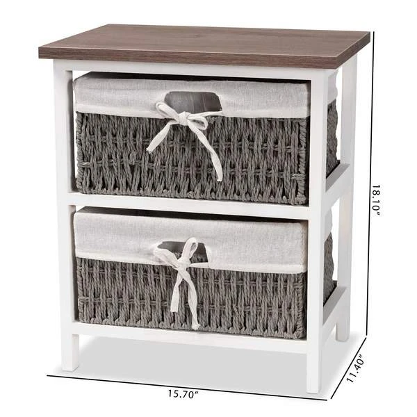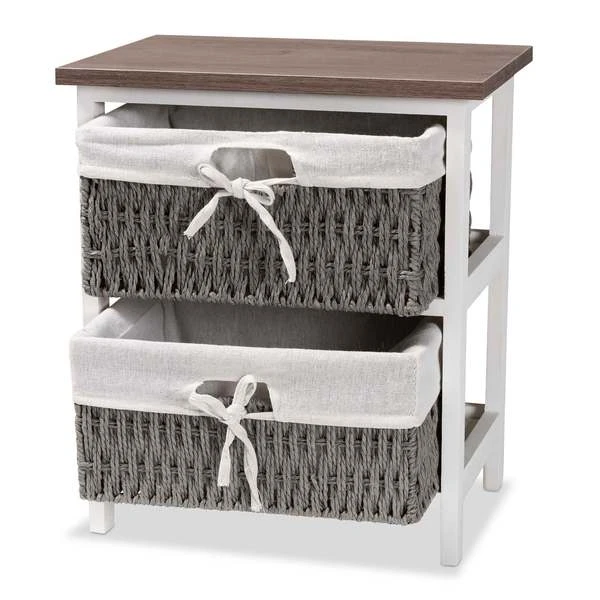 Baxton Studio Terena Modern Transitional Two-Tone Walnut Brown and White Finished Wood 2-Basket Storage Unit